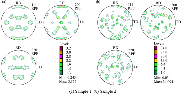 Fig. 15 {111}, {200}, {220} pole figures of samples