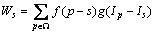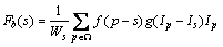 其中:s为邻域Ω内的像素;Is为像素值;Ws为权值核函数f和g的归一化系数;设σf和σg分别为高斯函数f和g的偏差,性能测试中取2和1。