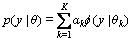 由于红外图像的直方图有明显的峰存在,多数情况下为单峰或双峰[11]。但文献[11]采用单一的高斯函数实现直方图规定化,导致原红外图像的直方图为多峰或者不存在的峰值时,会出现严重的失真。采用高斯混合模型(Gauss mixture model, GMM),其概率分布模型p(y|θ)[12]为