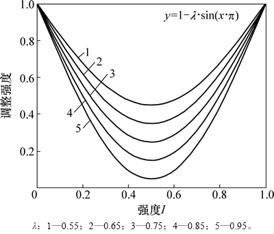 利用韦伯比曲线模拟构造局部细节调整函数,目的是根据背景光照分量进行相应的细节增强,拟合相似的细节调整函数曲线,根据图3所示,λ取0.85。