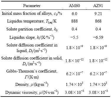 Table 1 Physical property parameters of AZ91 and AM60 magnesium alloys[23-25]