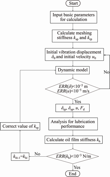 Figure 5 Calculation flow chart for analysis of lubrication performance with different modification coefficients