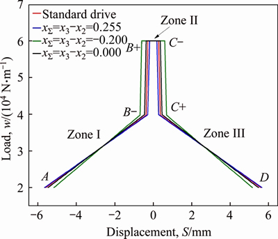 Figure 6 shows the distribution of the load along the line of action. S denotes the distance from the meshing point to the pitch point, and S=0 denotes the position of the pitch point. In Zones I and III, there were two pairs of meshing teeth. However, in Zone II, there was only one pair of meshing teeth.