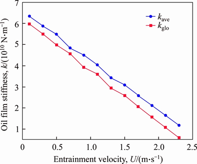 4.3.1 Influence of entrainment velocity on oil film stiffness
