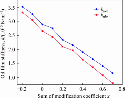 4.3.2 Influence of modification coefficient on oil film stiffness