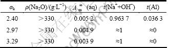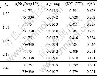 表1 铝酸钠溶液的极限摩尔电导率及铝酸根离子的离子迁移数