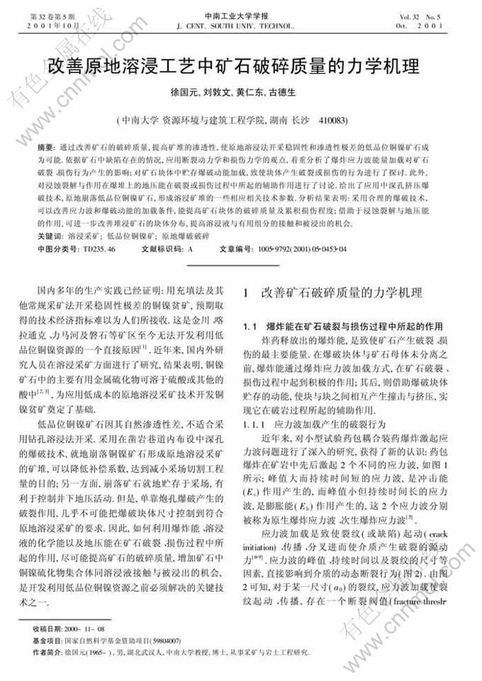 关键词:溶浸采矿;低品位铜镍矿;原地爆破破碎