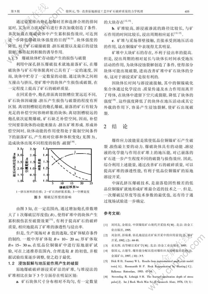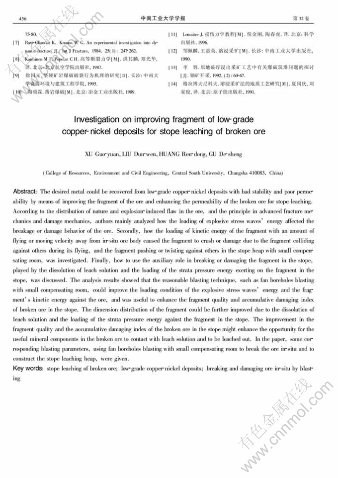 Key words:stope leaching of broken ore; low-grade copper-nickel deposits; breaking and damagingore in-situ by blasting