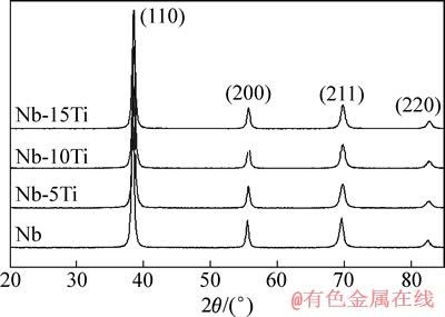 图2 烧结后不同Ti含量多孔Nb-Ti合金的XRD谱