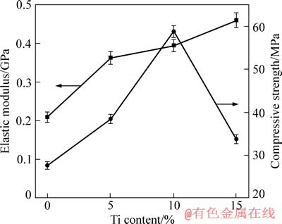 图6 不同Ti含量多孔Nb-Ti合金的力学性能