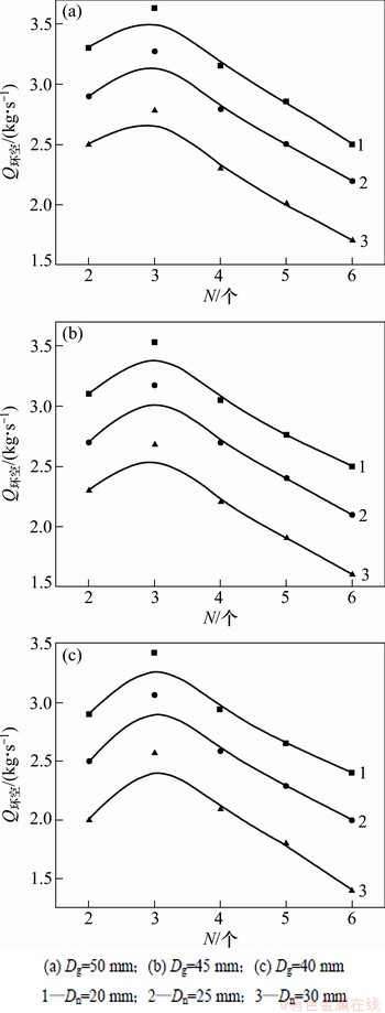 4.2 引导段直径Dg、喷嘴直径Dn变化时,喷嘴数量N变化对Q环空的影响