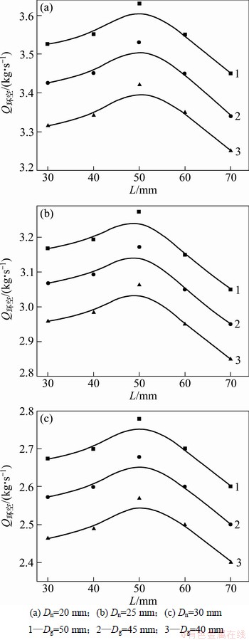 4.3 喷嘴直径Dn、引导段直径Dg变化时,喷嘴长度L变化对Q环空的影响规律