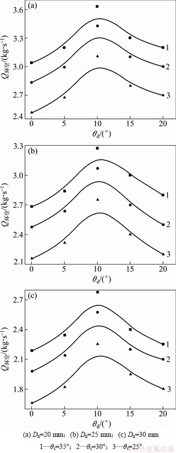 4.5 喷嘴直径Dn、喷嘴倾斜角度θs变化时,喷嘴偏转角度θd对Q环空的影响规律