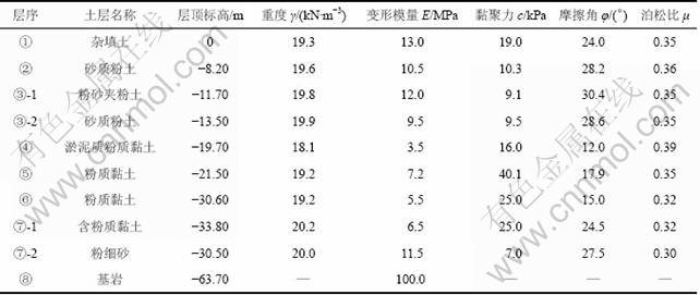 本文中土体采用Mohr-Coulomb屈服准则,其屈服函数为: