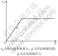 由于混凝土与土的变形及强度特性相差较大,在外力作用下,其界面有可能产生相对错动、滑移或裂开。为了模拟这些物理现象,在筏板与土之间设置无厚度接触面单元。接触面单元特性采用Coulomb摩擦接触模型描述,定义如下。