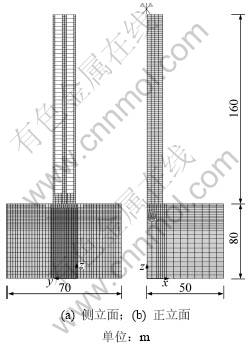 (4) 只对筏板以下的土层建立有限元模型,筏板以上的土体按自重简化为均布荷载;