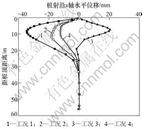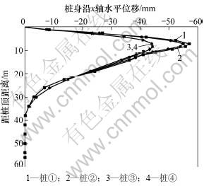 3.3 地铁隧道开挖对群桩水平变形的影响