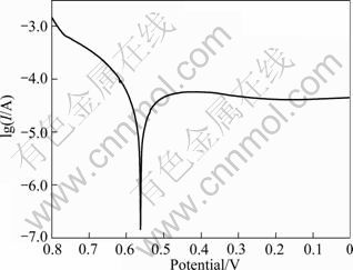 图8 La0.4Ca0.6CoO3+2%Ag粉末微电极的Tafel曲线