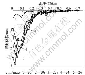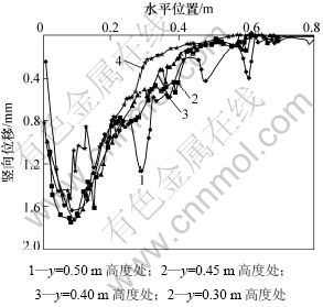 Fig.3 Vertical displacements of particles with rigid retaining wall movement model of RT