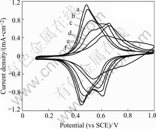 Fig.2 Cyclic voltammograms for NiHCF thin films on Pt cycled in 1 mol/L KNO3 at 25 mV/s