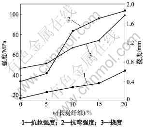 Fig.6 Effects of long carbon fiber content on mechanical properties of carbon paper