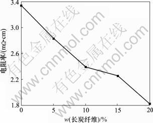 Fig.9 Effects of long carbon fiber content on conductivity of carbon paper