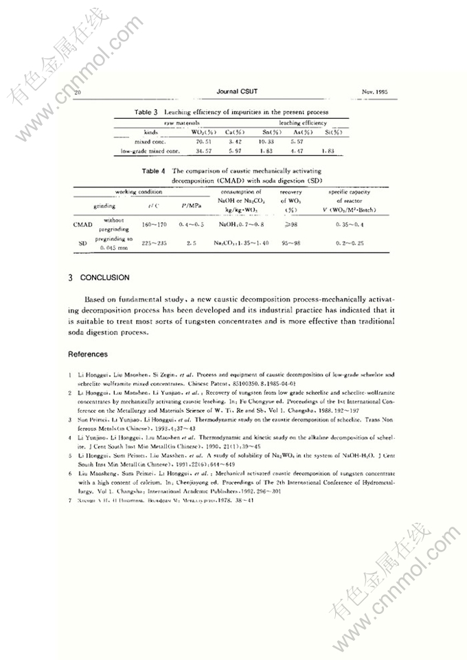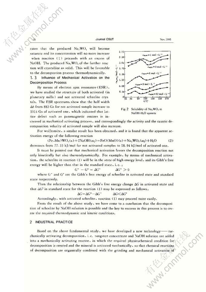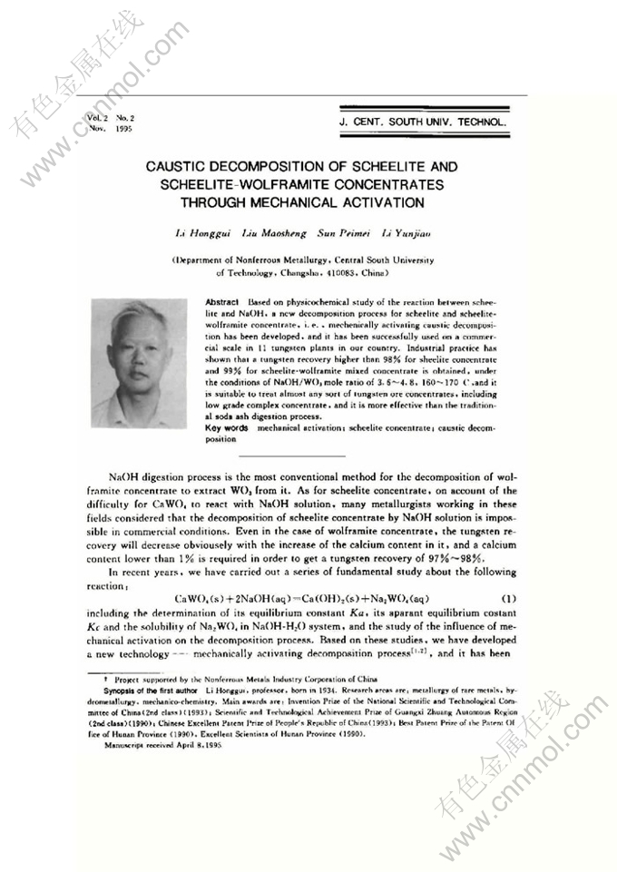 Key words:mechanical activation; scheelite concentrate; caustic decomposition