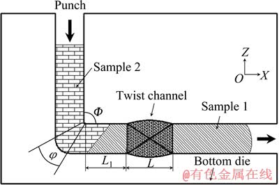 Fig. 1 Schematic diagram of FEM for ECAPT process