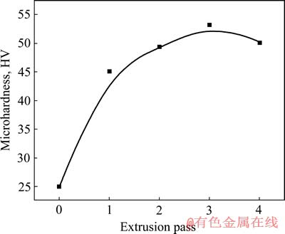Fig. 10 Microhardness of billets under different ECAPT passes