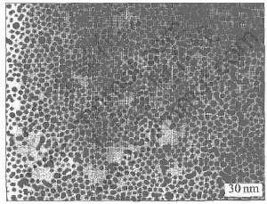 In photochemical preparation of the colloidal Au or Ag particals, PEG was mainly used as the protective agent and acetone can accelerate the photoreduction reaction. After 10min irradiation, yellowy gold solution turned rose. A surface plasmon resonance (SPR) absorption band which did not change with further irradiation was at a maximum wavelength of 514nm. TEM image characterized in Fig.1 shows the monodispersed spherical Au particles with average diameter of 3.9nm (Relative standard deviation(RSD)(%)=16.0). These particles can be used as seeds for further formation of core-shell structure. For the preparation of Ag colloid, after 5min irradiation, a SPR absorption band appears at 401nm. However, the absorption intensity decreased with further irradiation, and transparent solution turned turbid. This can be attributed to the aggregation of Ag nanoparticles.