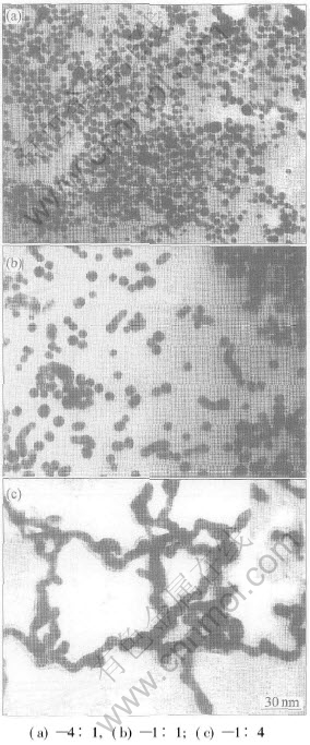 Fig.3 TEM images at different molar ratios of Au to Ag