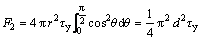 设颗粒在与水平成θ角处的微分面积为dA,对微分面积dA的剪切阻力F2在垂直方向的分力进行积分,可得到粗颗粒在膏体充填料浆中所受剪切阻力F2: