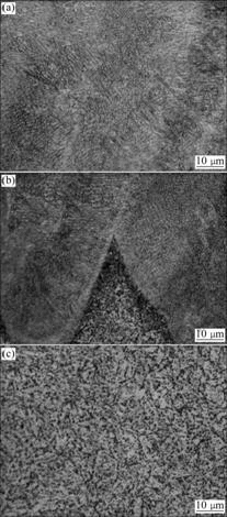 Fig.3 Microstructures of AISI H13: (a) Melted zone; (b) HAZ; (c) Base metal