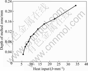 Fig.4 Charge of depth of melted zone with heat input rate