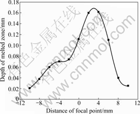 Fig.6 Change of depth of melted zone with distance of focal point