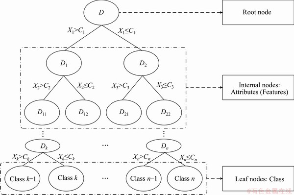 Figure 1 Structure of a DT (Xn represents test attributes, and Cn is a constant threshold representing the best attribute-based test)