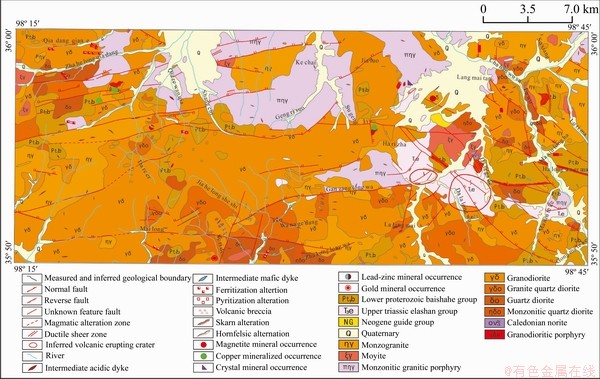 The authors would like to thank the Co-Construction MapGIS Library by Engineering Research Center for Geographic Information System of China and Central South University for providing MapGIS software. We also thank senior engineer Professor ZHANG Shao-ning (The 8th Team of Qinghai Provincial Bureau of Nonferrous Metals and Geological Exploration) and Professor LAI Jian-qing (Central South University) for their kind assistance in the area of data collection.