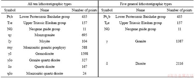 Table 1 Lithostratigraphic types in studied area and number of sampling points