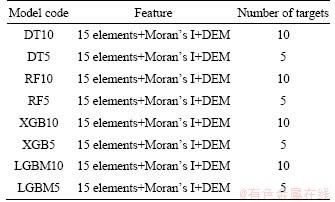 In this work, four different machine learning algorithms, i.e., the DT, RF, XGB and LGBM, were used to train different models. The concentrations of 15 geochemical elements and their respective local Moran’s I coefficients and three terrain factors of each sampling point were used as features to train models for the ten lithostratigraphic classifications and the five general lithostratigraphic classification tasks. We designed eight different classification models in total according to different tasks (Table 2).