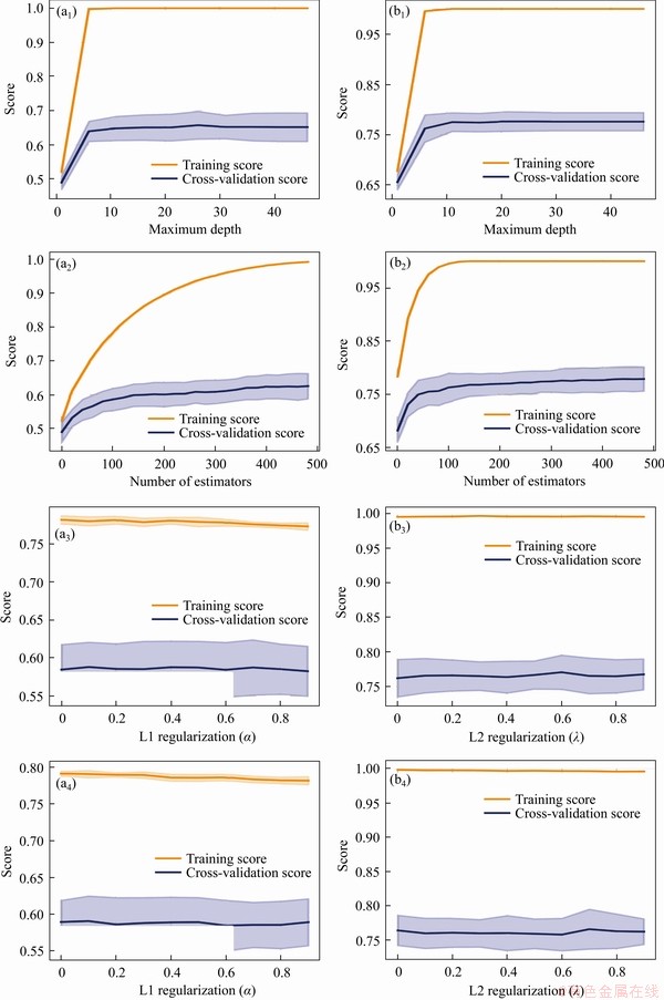 Figure 10 Validation curves of models XGB10 (a) and XGB5 (b)