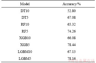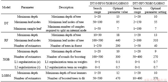 Because XGB needs to scan the entire dataset at each iteration, the efficiency and scalability of XGB cannot meet the needs of studies with high-dimensional features, which is very time consuming. To solve this problem, KE et al [56] designed the LGBM algorithm. Compared with XGB, LGBM has shown amazing efficiency, accuracy and capabilities of big dataset processing. Its main innovations are two novel techniques, i.e., gradient-based one-side sampling (GOSS) and exclusive feature bundling (EFB).