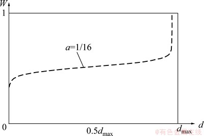 在此必须指出,主观倾向因子a取值不能太小,如图6所示,此时驾驶人对侧向偏移值的判别出现偏差,认为在d<dmax范围内的侧向偏移差别不大,这与实际不符。因此,主观倾向因子a存在一个限制范围