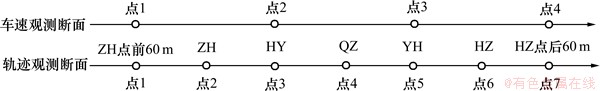 为了检验本文提出的理论模型的完整性和有效性,以及标定主观倾向性曲线模型参数,本文选取8处自由流状态下的双车道公路曲线段进行实地实验,采集过往车辆的车速和行驶轨迹。观测断面的编号如图8所示。