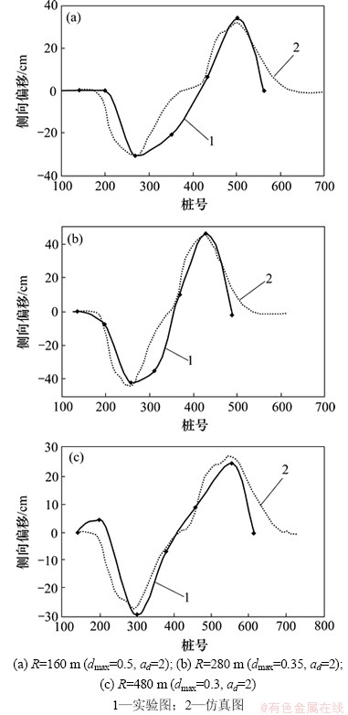 对R<500 m的曲线段,dmax=0.4~0.5,ad=2,取dmax的平均值为0.45,