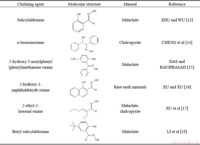 [17] XU Hai-feng, ZHONG Hong, WANG Shuai, NIU Ya-nan, LIU Guang-yi. Synthesis of 2-ethyl-2-hexenal oxime and its flotation performance for copper ore [J]. Minerals Engineering, 2014, 66-68: 173-180.