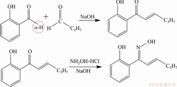 Aldol condenzation is a convenient method to acquire new aldehydes or ketones, which can be easily obtained without the use of precious metal catalysis and harsh reaction conditions [19]. Subsequently, ketone oximes can be synthesized by the dehydration of product of aldol condensation with hydroxylamine hydrochloride [20]. To the best of our knowledge, 1-(2-hydroxyphenyl)hex-2-en-1- one oxime (HPHO) for flotation of malachite has been hardly reported in previous literatures [13-18].
