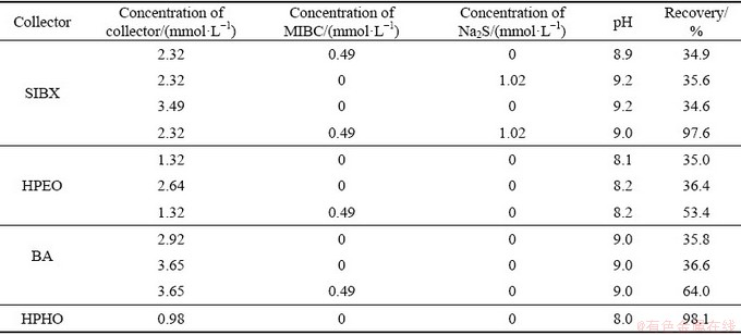 Table 2 Flotation results without or with MIBC and Na2S