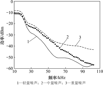 为脉冲噪声。为得到有效的电力噪声模型,选湖南大学13舍实验楼作为测试点,对第7楼配电箱A相分时段对连续噪声进行测量记录,根据用电负荷不同,分成3个时段进行测量: