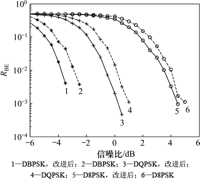 为升余弦低通滤波器的增益值。图4所示为RSN为-6~6 dB时,2种算法100个数据分组的检测起点Pstart均值比较。从图4可见:在-6 dB时,新算法的Pstart均值为979,而经典算法为967,经典算法的均值比新算法的大;在6 dB时,新算法的Pstart均值为994,而经典算法的均值为981,同样经典算法比新算法的均值高。所以,多个数据分组检测起点Pstart求平均后,检测结果更逼近真实起点,并且新算法比经典算法更准确,在低信噪比环境中依然适用。图5所示为2种检测算法在G3-PLC系统中的误码率RBE比较结果。