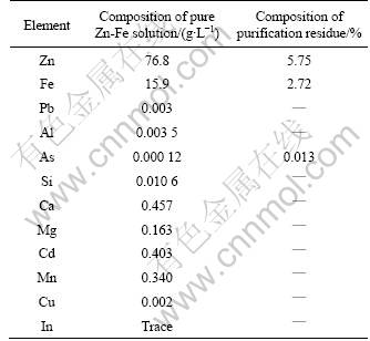 Table 4 Chemical compositions of pure Zn-Fe sulfate solution and purification residue